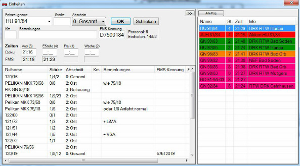 Die Einsatzdokumentation greift über ihre Netzwerkverbindung auf den ameV100-Server zu. Auch dieser Programmteil ist multiuserfähig, d.h. bei bestehender Online-Verbindung stehen die an einem Arbeitsplatz eingegebenen Informationen sofort allen Teilnehmern zur Verfügung.