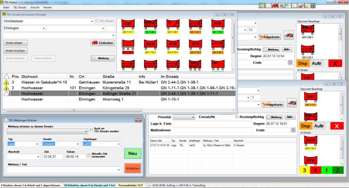 Das TEL- Modul ist für die Leitung von mehreren, gleichzeitig laufenden örtlichen oder überörtlichen Einsätzen. Es ermöglicht, eine Vielzahl von einzelnen Einsätzen gleichzeitig zu führen und unterhalb eines Haupt-Einsatzes zu verwalten. Durch das TEL-Modul kann trotz parallelen Einsätzen jederzeit der Überblick über die Gesamtsituation behalten werden.